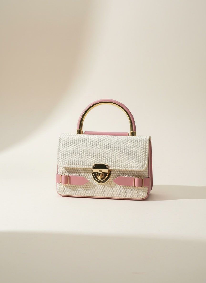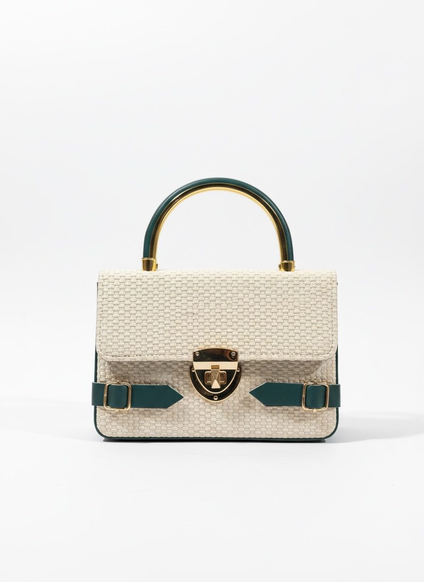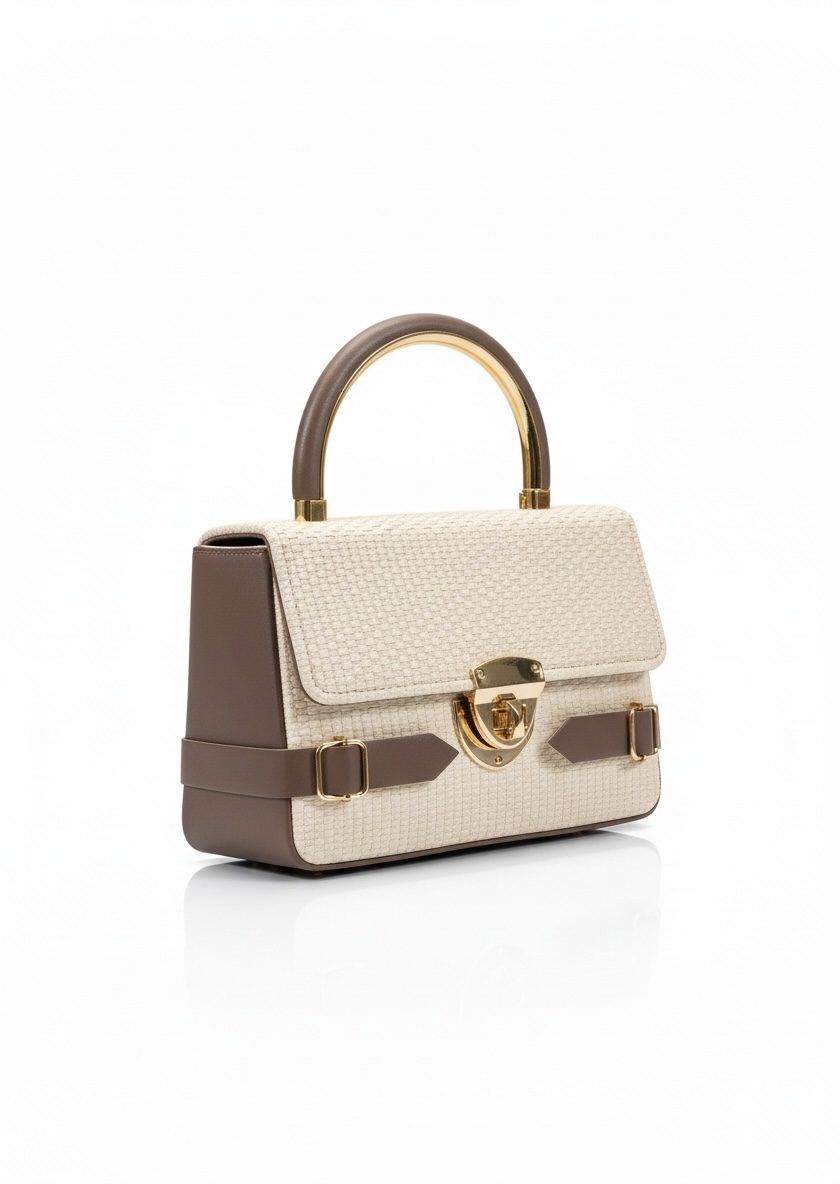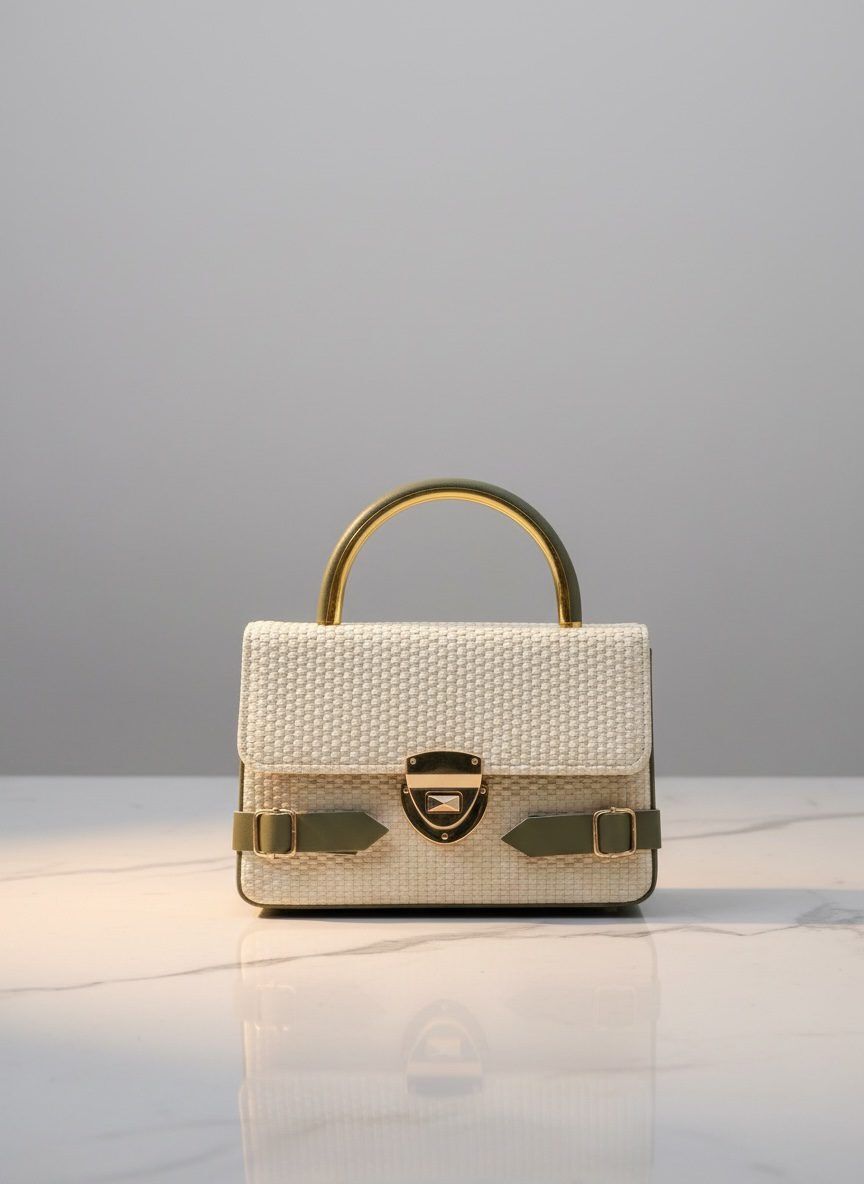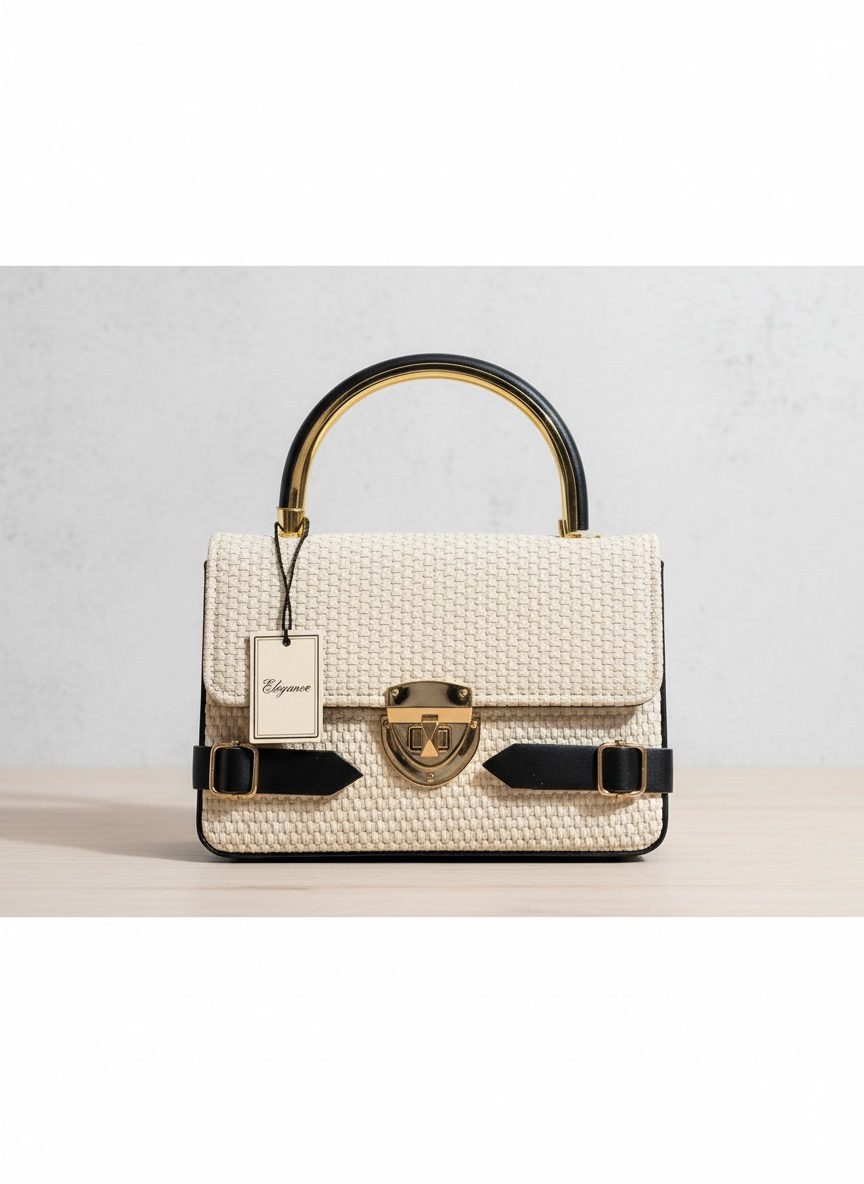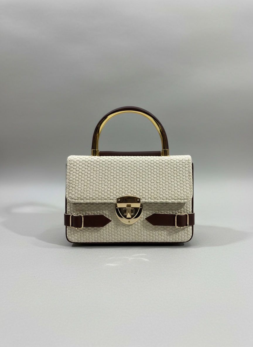 Designed with a luxury woven texture, this bag features a sleek gold-tone handle and a stylish lock closure that gives it a classy, high-end vibe.
