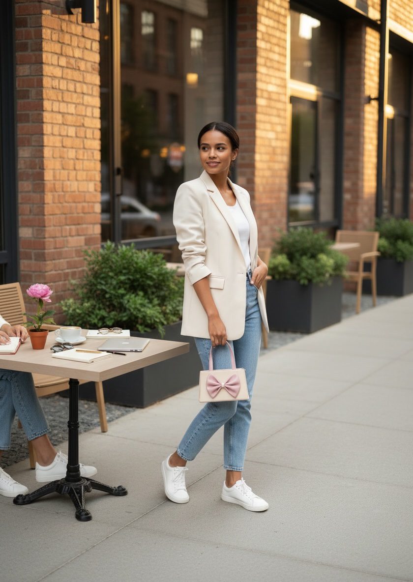 Designed with a premium structured body and a stunning gold-shaped handle, this bag instantly adds a classy touch to your look.