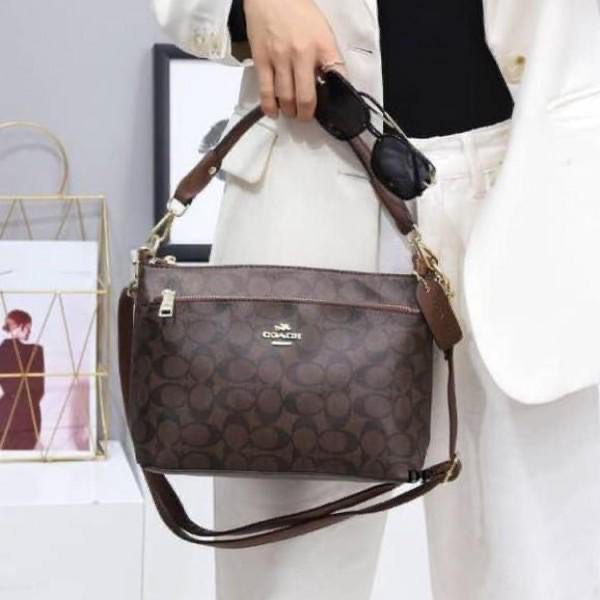 Stylish and functional, this floating medium-sized handbag features three elegant chains and three spacious compartments for easy organization. Comes with a sling belt, allowing you to use it as a handbag or sling bag, and is available in two classy shades.