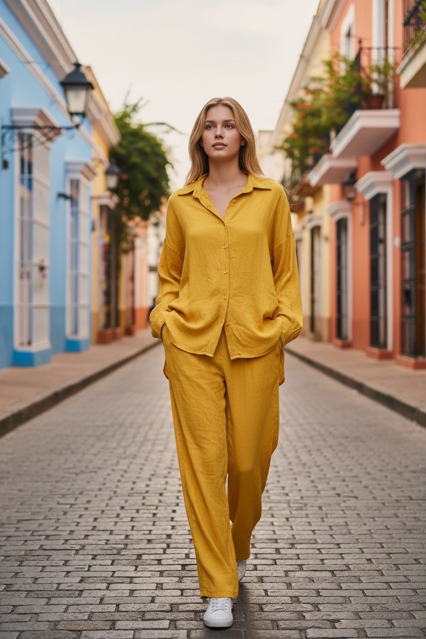 Plain mango yellow cord set crafted from premium imported fabric. Comfortable, stylish, and available in XL & 3XL  size.